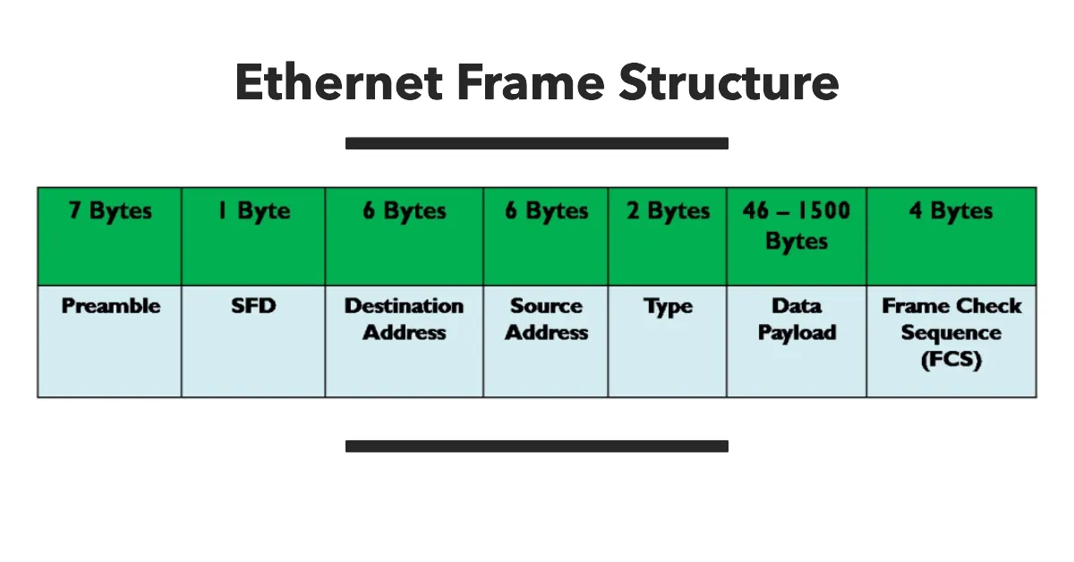 - Preamble (7 bytes): Synchronizes sender and receiver, signaling a new frame.