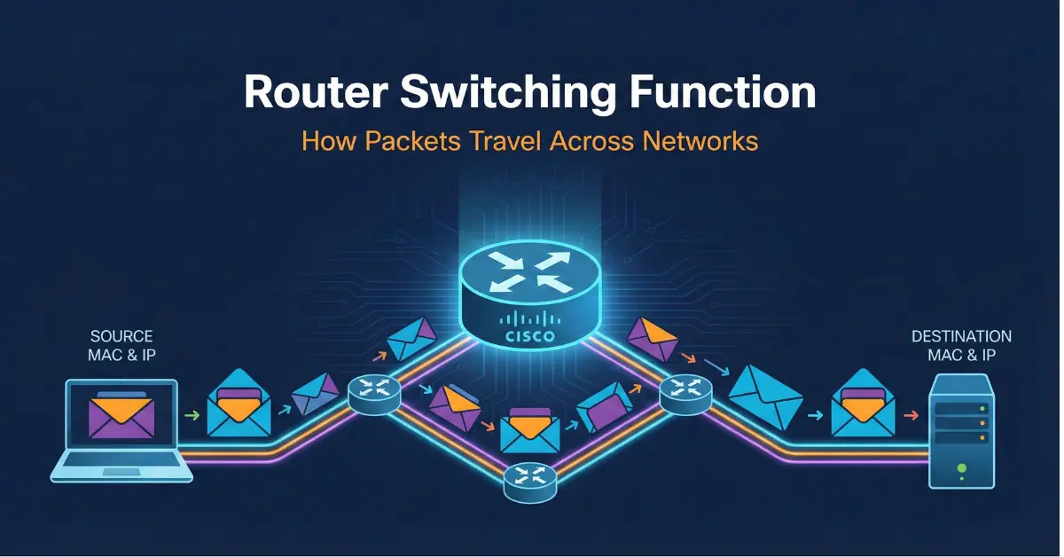 The router is a device that receives a packet from the source on any interface and forwards it to its destination on another interface. This is possible with the router switching function, which encapsulates packets in the data link frame type for the outgoing data link. Before going further, learn the key networking terms for router switching: