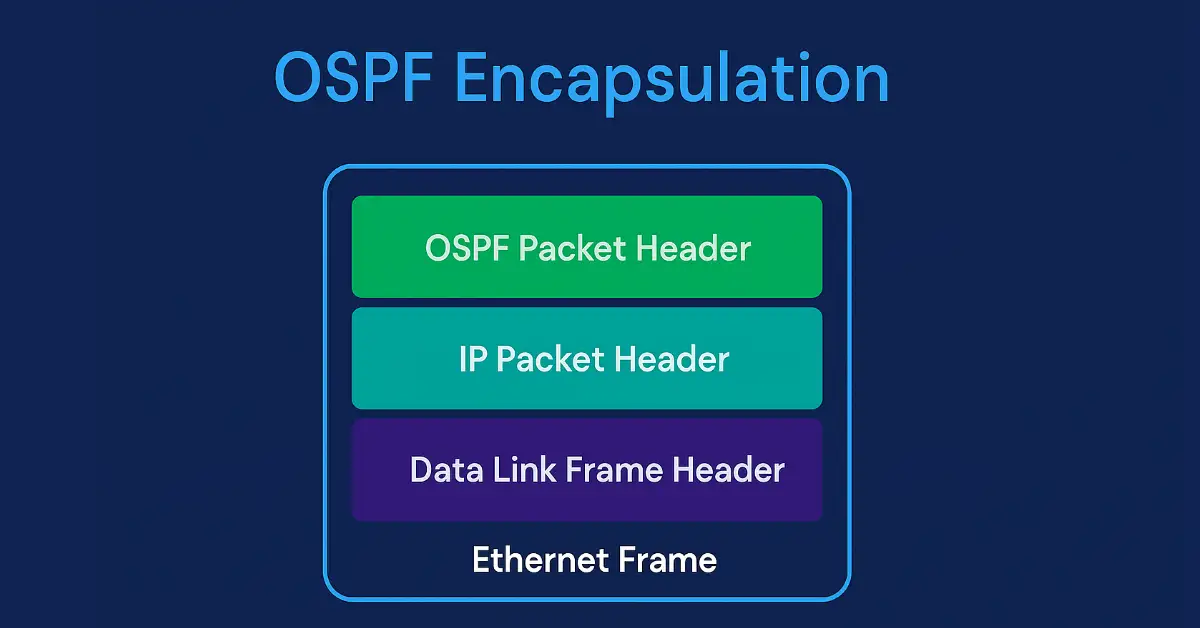 Open Shortest Path First (OSPF) operates at the Internet Protocol’s network layer, encapsulated solely by IP and local data-link headers. This encapsulation enables efficient routing in enterprise networks. When transmitted over Ethernet, OSPF messages include a data-link frame header, an IP packet header (with protocol field 89), and an OSPF packet header, ensuring reliable delivery. For CCNA and CCNP students, mastering this process is key to understanding OSPF Encapsulation operations and excelling in exams. This guide explores OSPF encapsulation, packet headers, and practical applications, updated for 2025 to reflect current Cisco best practices.