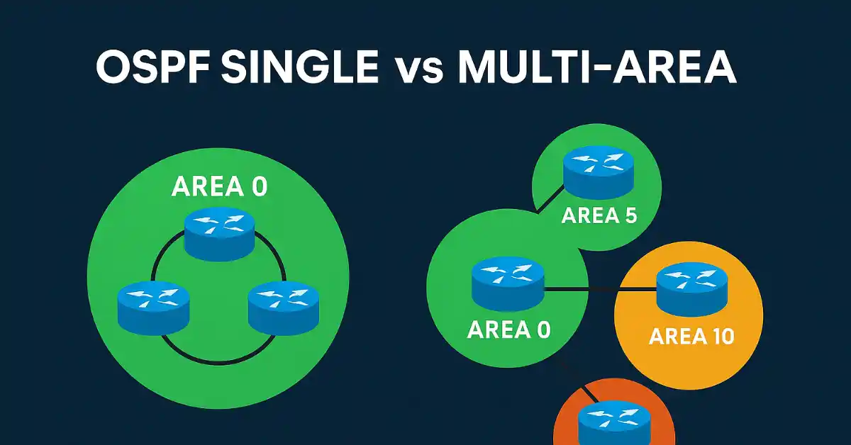 Open Shortest Path First (OSPF) is a link-state routing protocol widely used in enterprise IP networks for its efficiency and scalability. Unlike distance-vector protocols like RIP, OSPF uses a hierarchical design, segmenting networks into areas to optimize routing. Each area consists of routers sharing identical Link-State Databases (LSDBs), containing topology information. For CCNA and CCNP students, mastering OSPF is critical for both certification exams and real-world network design. OSPF can be implemented in two primary ways: Single-Area OSPF and Multi-Area OSPF. This article explores both, their advantages, configurations, and best practices, with practical insights for exam preparation and network engineering.