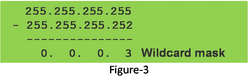 Wildcard mask as the opposite of a subnet mask. For example, the inverse of the subnet mask 255.255.255.252 is 0.0.0.3. To calculate the wildcard mask of the subnet mask, deduct the subnet mask from 255.255.255.255 as shown in figure 3: