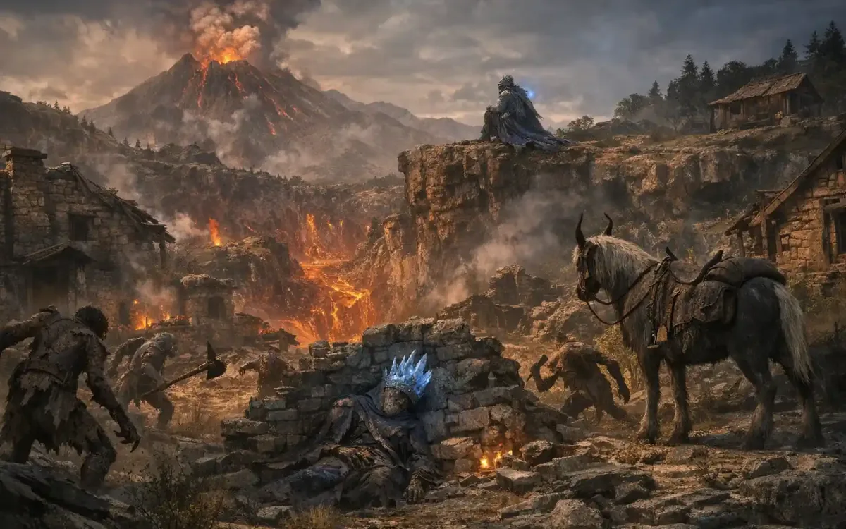To reach Hermit Village in Elden Ring, begin at the Seethewater River Site of Grace in northwest Mt. Gelmir after unlocking the region from Altus Plateau. Head south along the magma lake, pass Fort Laiedd, bypass or defeat the Magma Wyrm by hugging the right cliff, continue east under the rocky overpass while dodging the Runebear ambush, and activate the Craftsman’s Shack grace. Ride north up the hill and the village appears right away. Clear the Demi-Humans, loot the Errant Sorcerer set and Hierodas Glintstone Crown, then continue north to Primeval Sorcerer Azur for Comet Azur. Alternative starts from Erdtree-Gazing Hill or Liurnia ravine ladders also work but involve more optional bosses. The entire trek takes 10-15 minutes on Torrent once you know the path. No story progress is required, and the location stays identical in every 2026 patch.