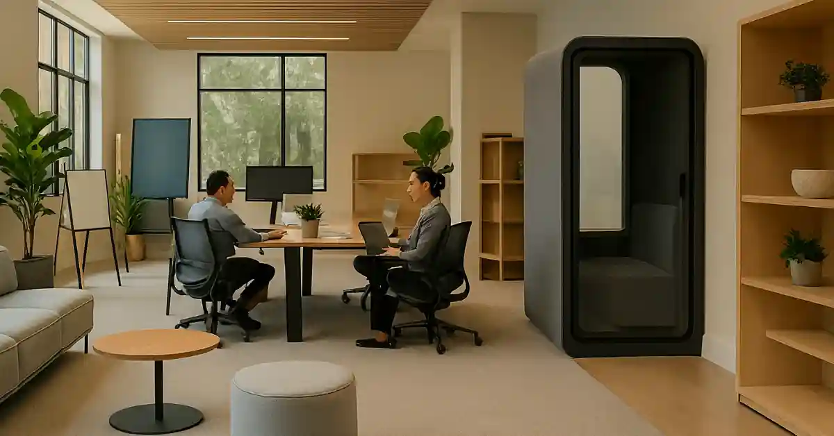 Great hybrid offices are not fixed; they flex to the needs of the team. Rather than assigning designated workstations for everyone, progressive offices focus on modular layouts and multi-use zones. Movable barriers, height-adjustable desks, and flexible furniture that can be laid out in different ways allow space to be reshaped to changing demands, whether it is a brainstorming session with the team today and a solo deep work session the next day.