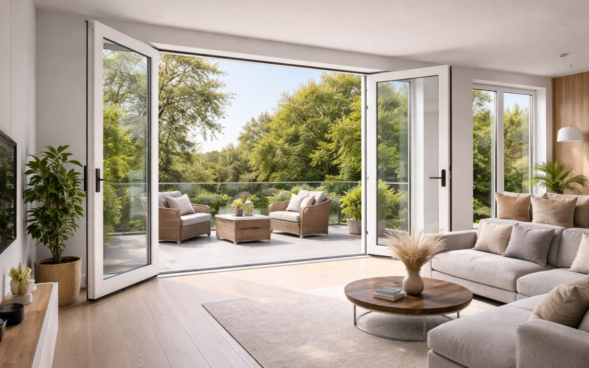 When both door panels are opened, the interior space flows naturally into the outdoor area. This can make terraces, balconies, and gardens feel like extensions of the living room.