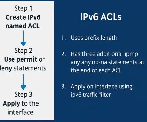 Access Control Lists (ACLs) are a fundamental component of network security, and understanding IPv6 ACLs is essential for CCNA and CCNP certification candidates. As networks transition from IPv4 to IPv6 to accommodate the growing number of devices, mastering IPv6 ACL configuration is critical for securing modern networks. This comprehensive guide explains IPv6 ACLs, compares them...