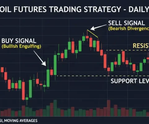 Candlestick Chart Illustrating Crude Oil Futures Trading Strategy With Annotations