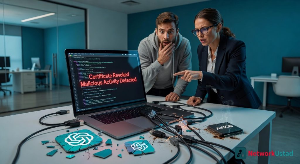 Apple’s Gatekeeper protocol enforces code signing to verify app integrity, and revoking the certificate rendered the app unlaunchable on macOS systems until re-signed. This action prevented widespread exploitation, as noted in OpenAI’s official security update.