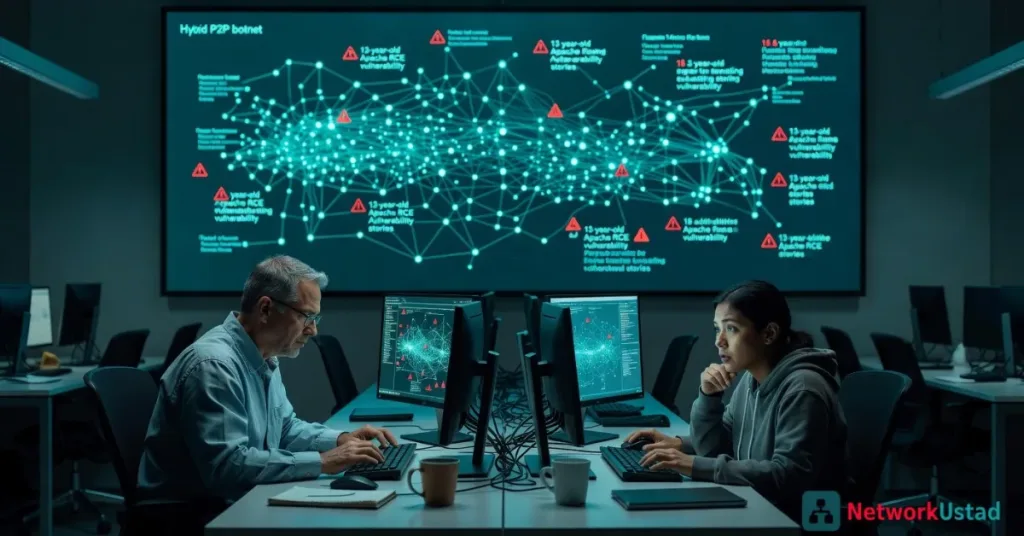 A hybrid peer-to-peer botnet has infiltrated enterprise networks by exploiting unpatched endpoints, commandeering devices for distributed denial-of-service attacks that overwhelm bandwidth with sustained throughput exceeding 10 Gbps per infected node. This development coincides with the resurgence of a 13-year-old remote code execution vulnerability in Apache Struts, where attackers inject malicious payloads via the framework’s action mapper, bypassing outdated encryption protocols in legacy web applications. These incidents, part of a broader bulletin encompassing 18 additional threats, underscore how dormant flaws gain new potency through modern attack architectures.